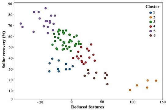 K-means clustering (K = 6) applied to froth feature dataset in order to group the sulfur removal value.