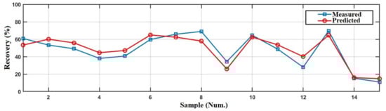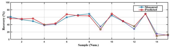 Due to the nonlinear and complex nature of the flotation process, the large number of variables involved, and the very limited understanding of the physicochemical rules of the flotation process, accurate prediction of grade and recovery parameters is a difficult task [,,,]. Therefore, data-driven approaches requiring less prior knowledge about the system state variables (the input/output) are viewed as alternative strategies for modeling the flotation process. In the past few decades, modelling and predicting flotation behavior based on operational variables (such as reagent dosages) using numerical techniques has been extensively studied by researchers [,,,,,,], although there is no universally accepted forecasting model. Most of these models only used relatively few operational parameters as the input variables so that they failed to enable the capture of the strong nonlinear relationship between the variables in a wide range of operating conditions. These models still have challenges, such as needing a large quantity of data, and have a complex configuration that limits their application.