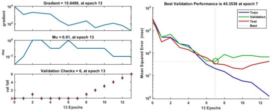 The proper choice of the number of neurons in the hidden layer is an important task. According to the literature, as long as the number of neurons in the hidden layer is appropriately specified within reasonable limits, a three-layer BPNN can be effectively applied to model a wide range of complex problems []. Too many neurons may result in increasing the computational time or overlearning so that the NN loses its ability to generalize the patterns present in the training dataset. On the other hand, very few numbers of neurons may cause underfitting so that the model is not complex enough to capture patterns in the data [,].