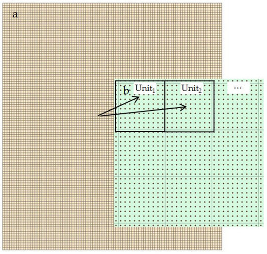 Unit divisions of the geological grid: (a) regional grid units; (b) information points in each grid unit.