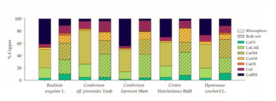 - Perlatti, F.; Ferreira, T.O.; Romero, R.E.; Costa, M.C.G.; Otero, X.L. Copper accumulation and changes in soil physical-chemical properties promoted by native plants in an abandoned mine site in northeastern Brazil: Implications for restoration of mine sites. Ecol. Eng. 2015, 82, 103–111. [Google Scholar] [CrossRef]
