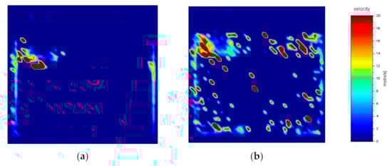 The distribution of average speeds for the entire simulation, however, paints a different picture, based on the sampled region shown in Figure 10 and the average velocities obtained over the simulation period as shown in Figure 11.