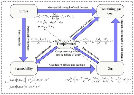 Therefore, the occurrence and development of coal and gas outburst involves multiple physical field parameters, such as the stress, gas pressure, temperature, and seepage fields (Figure 1).