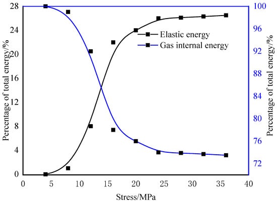 The relationship between geo-stress, gas energy, and elastic energy ratio.