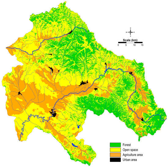 Regarding the demographic structure in the region, 65% of the populated areas belong to the category of urban areas, while 35% of the total populated areas are categorized as rural areas. In the research region, there is an unequal distribution of urban and rural populations. Considering land cover, the region is considerably diverse. Along the whole courses of the Bregalnica and Kriva Reka rivers, agricultural cultivated lands dominate. Pastures are also considered as agricultural lands, and are represented in yellow, as open areas. About 30% of the study area belongs to the forest regions, localized around the Maleševska Valley, represented by the Maleševski Mountains, and around the Kočani Valley, represented on one side by the Osogovo Mountains and by Plačkovica on the other. Kočani Valley is one of the most used agricultures lands along the Bregalnica River Basin. Along the upper course of Kriva Reka brown forest soil, as well as leptosol and regosol dominate. The rest of the area is characterized by the occurrence of complex of humic calcaric regosol and smolnica and rendzina as the dominant pedological units. Quite complex pedological units composites are found in the Bregalnica River Basin (http://www.maksoil.ukim.mk/masis, accessed on 25 May 2018). Most intensive agricultural land use occurs in Kočani Valley, which occupies the middle course of the river. The main pedological units are complexes of vertisol, regosol and leptosol.
