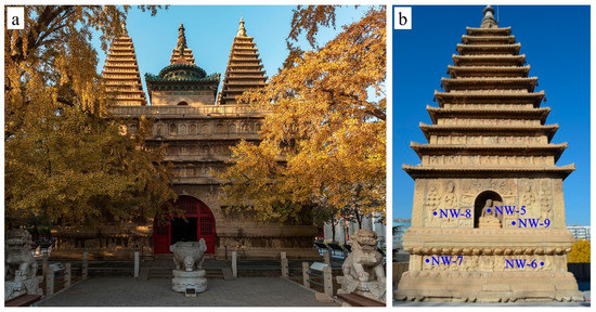 - Luo, Z. Jin Gang Throne Tower of Zhenjue Temple. Cult. Relics 1979, 29, 86–89. (in Chinese). [Google Scholar]