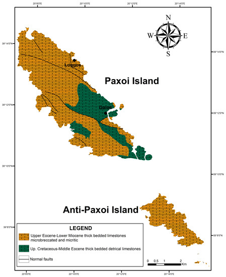 - Institute for Geology and Subsurface Research. Geological Map of Greece: Paxi Sheet; Institute for Geology and Subsurface Research: Athens, Greece, 1969.