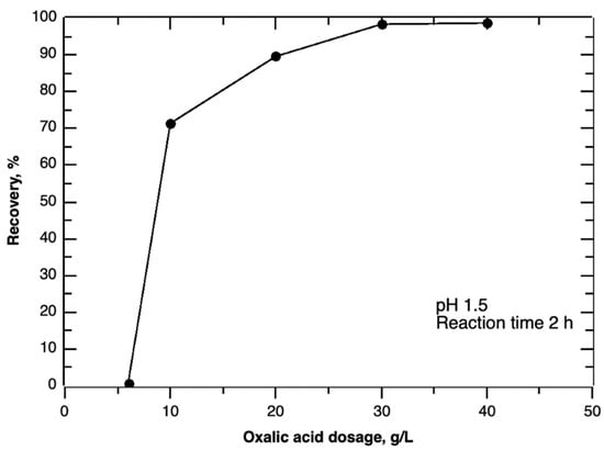 | Oxalic acid dosage | 6, 10, 20, 30, 40 g/L | pH 1.5; Reaction time 2 h. |