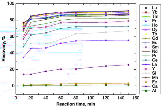 3.1.2. Effect of Reaction Time, pH and Oxalic Acid Dosage on REEs Recovery and Contaminants (Al, Ca, Fe, Mn, Si) Separation