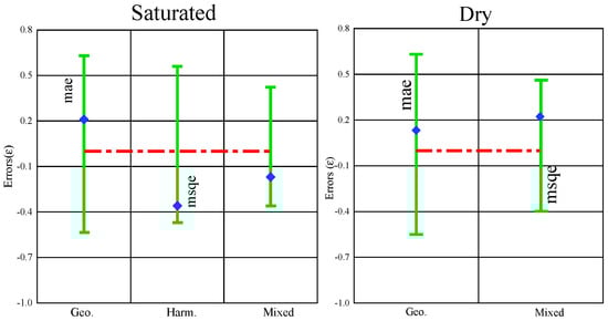 Error comparison of Geometric Model, Harmonic Model, and Mixed Model (in dry or saturated state).