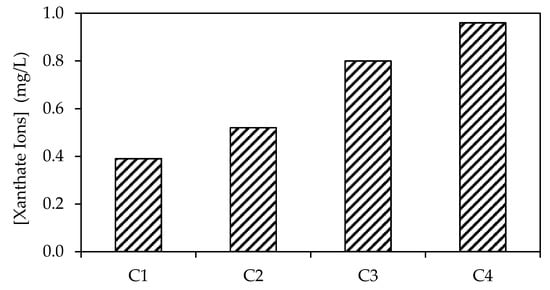 Xanthates are commonly used as collectors in the flotation of sulfide minerals. Although most of xanthate is found to be consumed during flotation, there are still residual xanthate molecules in the flotation tailings [10]. The amount of residual xanthate in process water depends on the pH, temperature, seasonal variations, and the site water management plan [11]. Residual xanthate and its by-products in the recirculated water may cause the loss of selectivity between minerals and affect flotation efficiency adversely [8]. Furthermore, disposal of residual xanthates and their oxidation products may have environmental consequences due to the possible contamination of soil and groundwater sources [12]. As deleterious effects on flotation plant efficiency have been considered, removal of residual xanthate is highly desirable.