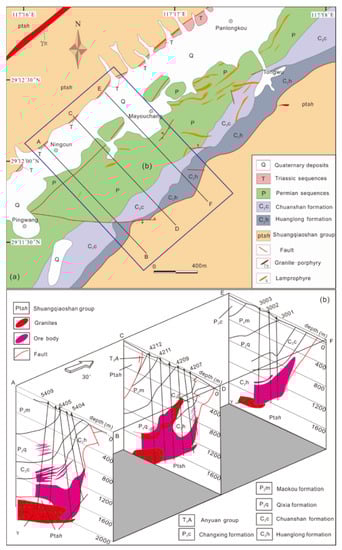 93. Mao, Z.H.; Liu, J.J.; Mao, J.W.; Deng, J.; Zhang, F.; Meng, X.X.; Luo, X.H. Geochronology and geochemistry of granitoids related to the giant Dahutang tungsten deposit, middle Yangtze River region, China: Implications for petrogenesis, geodynamic setting, and mineralization. Gondwana Res. 2015, 28, 816–836. [Google Scholar] [CrossRef]