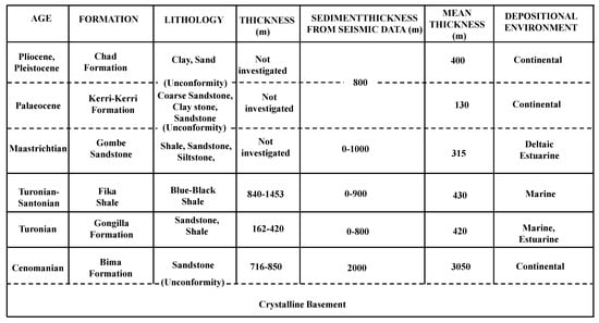 - Umar, T. Geologie Petroliere du Secteur Nigerian du Basin du Lac Tchad. Unpublished Ph.D. Dissertation, Universite de Pau et des Pays de l’Adour, Centre Universitaire de Recherche Scientifique Laboratoire de Geodynamique et Modelisation des Bassins Sedimentaires, Pau, France, 1999; 425p. Available online: https://www.theses.fr/1999PAUU3013 (accessed on 9 January 2022).
