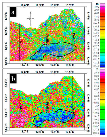 - Abdullahi, M.; Kumar, R.; Singh, U.K. Magnetic basement depth from high-resolution aeromagnetic data of parts of lower and middle Benue Trough (Nigeria) using scaling spectral method. J. Afr. Earth Sci. 2018, 150, 337–345. [Google Scholar] [CrossRef]
