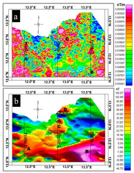- Ekwok, S.E.; Akpan, A.E.; Ebong, D.E. Enhancement and modelling of aeromagnetic data of some inland basins, southeastern Nigeria. J. Afr. Earth Sci. 2019, 155, 43–53. [Google Scholar] [CrossRef]