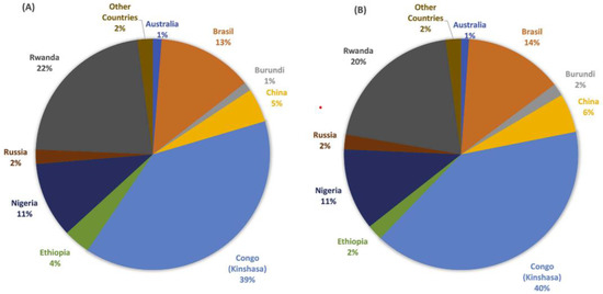 - Schütte, P.; Näher, U. Tantalum supply from artisanal and small-scale mining: A mineral economic evaluation of coltan production and trade dynamics in Africa’s Great Lakes region. Resour. Policy 2020, 69, 101896. [Google Scholar] [CrossRef]