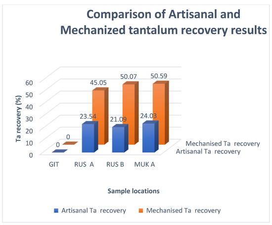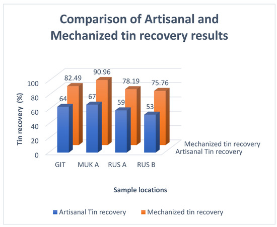 - The tin recovery from RUS A was 19.19% higher than that from the artisanal techniques;