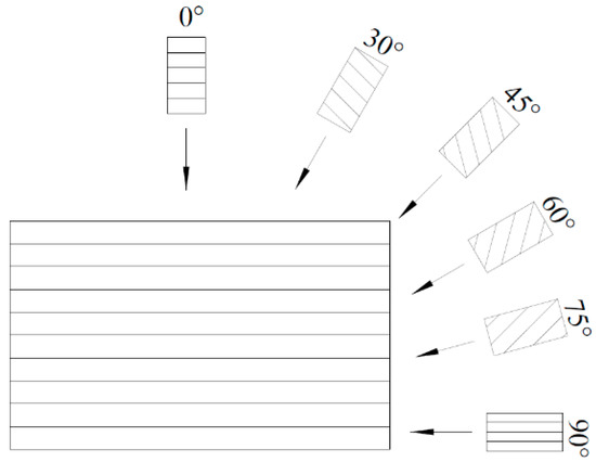 Two kinds of samples were created. The samples with a bedding angle of 0° were used to take the uniaxial compression tests and the triaxial compression tests, while the samples with bedding angles of 0°, 30°, 45°, 60°, 75° and 90° were used to analyze the mechanical behavior influence of the coal under the triaxial condition. The samples were obtained through different drilling angles, as shown in Figure 2.
