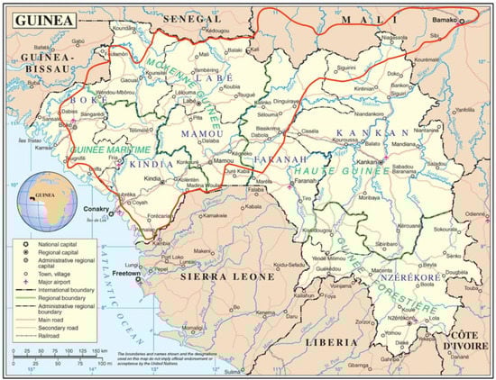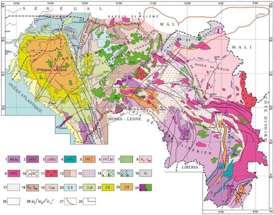 - Mamedov, V.I.; Chausov, A.A.; Okonov, E.A.; Makarova, M.A.; Boeva, N.M. The World’s Largest Fouta Djallon–Mandingo Bauxite Province (West Africa): Part I. Background. J. Geol. Ore Depos 2020, 62, 163–176. [Google Scholar] [CrossRef]