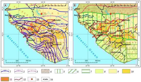 - Mamedov, V.I.; Makarova, M.A.; Boeva, N.M.; Vnuchkov, D.A.; Bortnikov, N.S. The world’s largest bauxite province Futa Jalon—Mandingo (West Africa). Part 2: The influence of the composition of source rocks on the abundance and quality of bauxite. J. Geol. Ore Depos. 2021, 63, 599–624. [Google Scholar] [CrossRef]