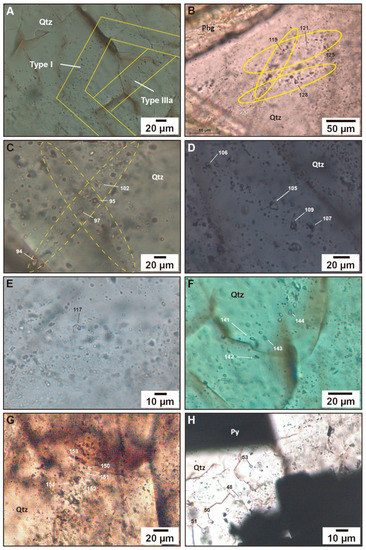 - Hollister, L.S.; Burrus, R.C. Phase equilibria in fluid inclusions from Khatada Lake metamorphic complex. Geochim. Cosmochim. Acta 1976, 40, 163–175. [Google Scholar] [CrossRef]