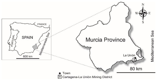 The study area was located in the former Cartagena-La Unión mining district (southeast of Murcia Province, Spain) (Figure 1).