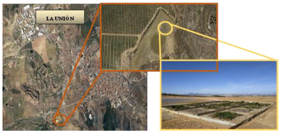 This area has a long mining history from ~200 B.C. until the middle of the 20th century, favoring the construction of tailings ponds that have originated severe negative impacts on the environment such as the formation of acidic mine drainage. The climate of the region is Mediterranean semi-arid with an average annual temperature of 18.36 °C and average annual rainfall of 315 mm in the last 20 years (SIAM, the agricultural information system of Murcia). The Cabezo Rajao tailings pond (La Unión, 37°37′ N, 0°54′ W) was selected in this study to set up the experimental plots. This tailings pond has an area of 16,000 m2 and an altitude of 92 m. Its mining residues are characterized by a high acidity (pH ~3) and a high total metal(oid)s content: 2873 mg·kg−1 of Zn; 137 mg·kg−1 of As; 9 mg·kg−1 of Cd and 769 mg·kg−1 of Pb. It also has an absence of organic matter and nutrients as well as no plant cover.