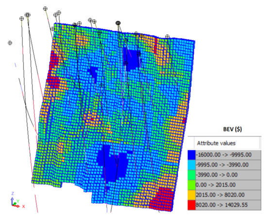 - Jamshidi, M.; Osanloo, M. Determination of block economic value in multi-element deposits. In Proceedings of the 6th International Conference on Computer Applications in the Minerals Industries, CAMI2016-06, Istanbul, Turkey, 5–7 October 2016. [Google Scholar]