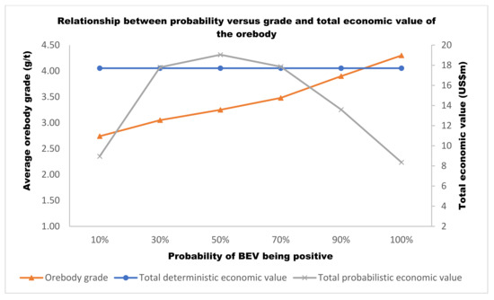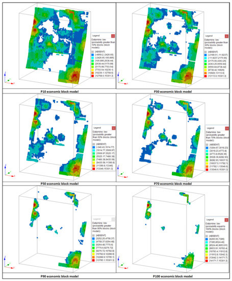 - Tholana, T.; Musingwini, C.; Ali, M.M. A stochastic block economic value model. In Proceedings of the Mine Planners Colloquium 2019: Skills for the Future—Yours and Your Mine’s, Johannesburg, South Africa, 22–23 May 2019; The Southern African Institute of Mining and Metallurgy: Johannesburg, Southern Africa, 2019; pp. 35–50. [Google Scholar]