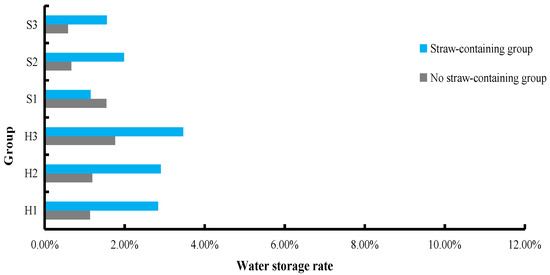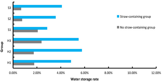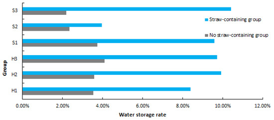 Figure 5 shows the water storage rate of rock specimens with and without straw powder after 24 h of immersion. Figure 6 shows the water storage rate of rock specimens with and without straw powder after 48 h of immersion. Figure 7 shows the water storage rate of rock specimens with and without straw powder after 72 h of immersion.