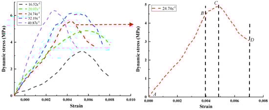 3.2. Dynamic Stress–Strain Curves of Layered Filling Body