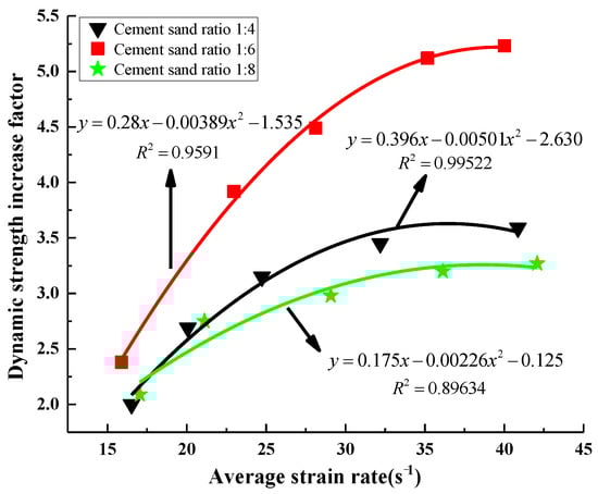 - With the increase of the average strain rate, the dynamic peak strength and dynamic strength growth factor of the layered filling body increased gradually, and the dynamic strength growth factor of the layered filling body with the cement–sand ratio of 1:6 was greater than that of the filling bodies with the cement–sand ratios of 1:4 and 1:8.