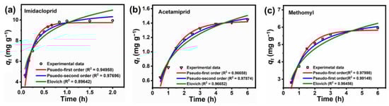 Chicago/Turabian StyleSrikhaow, Assadawoot, Wasitthi Chaengsawang, Tanongkiat Kiatsiriroat, Puangrat Kajitvichyanukul, and Siwaporn M. Smith. 2022. "Adsorption Kinetics of Imidacloprid, Acetamiprid and Methomyl Pesticides in Aqueous Solution onto Eucalyptus Woodchip Derived Biochar" Minerals 12, no. 5: 528. https://doi.org/10.3390/min12050528