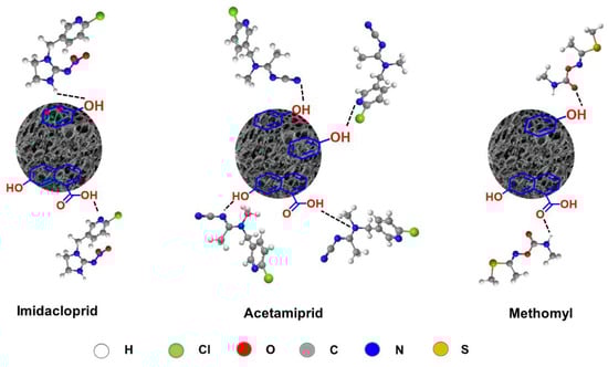 - Binh, Q.A.; Kajitvichyanukul, P. Adsorption mechanism of dichlorvos onto coconut fibre biochar: The significant dependence of H-bonding and the pore-filling mechanism. Water Sci. Technol. 2019, 79, 866–876. [Google Scholar] [CrossRef]