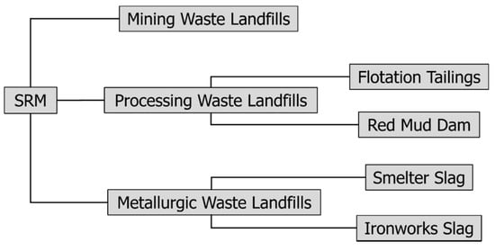 During the duration of RESEERVE project, data concerning 1460 deposits at 113 sites were obtained. Data were collected from flotation tailings, red mud dams, and metallurgical slags. The further segmentation is shown in Figure 2. However, it was concluded that not all deposits represent important sources for the possible recovery of raw materials in the future. Therefore, sites that did not meet the previously established criteria (tailings size must be greater than 0.5 million tons, with a promising chemical composition in an inactive, abandoned, or nonremediated state, tailings must be the result of older flotation methods and allow for the possibility of recovery methods) were excluded from the survey. In the end, 34 waste sites remained; however, this study dealt only with 17 of the best prospective locations obtained during the RESEERVE project. The process of data collection to form the mineral register of the West Balkan within the RESEERVE project, disseminated in this study, is described in detail in the not-yet-published article by Šajn et al. [28].