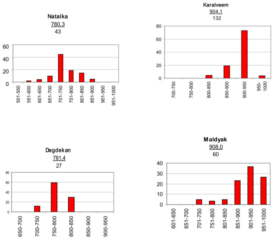 | Degdekan (2) | 1.0–41.0 | 0.1–11.3 | 10.2–35.3 | – | 1.5–9.6 | – | – | – |