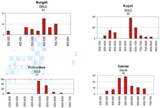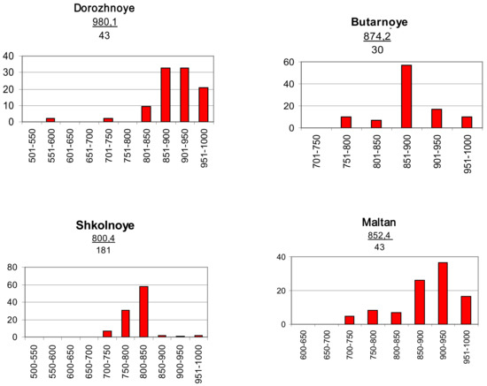 | Dorozhnoye (7) | 1.0–15.3 | – | – | 1.5–21.0 | – | – | 1.0–82.0 | – |