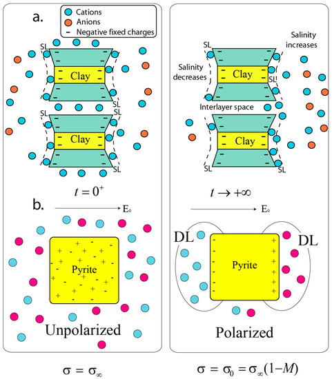 - Misra, S.; Torres-Verdín, C.; Revil, A.; Rasmus, J.; Homan, D. Interfacial polarization of disseminated conductive minerals in absence of redox-active species—Part 1: Mechanistic model and validation. Geophysics 2016, 81, E139–E157. [Google Scholar] [CrossRef]