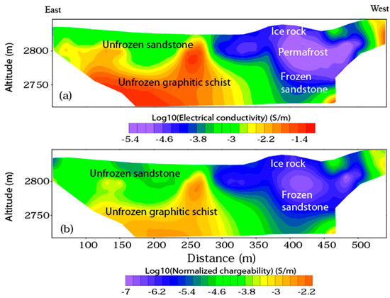- Revil, A.; Razdan, M.; Julien, S.; Coperey, A.; Abdulsamad, F.; Ghorbani, A.; Gasquet, D.; Sharma, R.; Rossi, M. Induced polarization response of porous media with metallic particles—Part 9: Influence of permafrost. Geophysics 2019, 84, E337–E355. [Google Scholar] [CrossRef]
