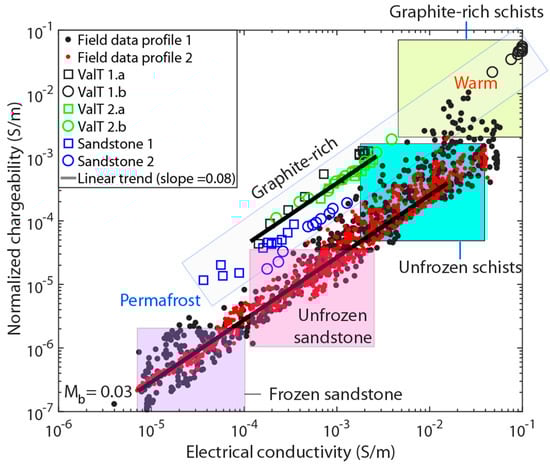 - Abdulsamad, F.; Revil, A.; Ghorbani, A.; Toy, V.; Kirilova, M.; Coperey, A.; Duvillard, P.; Ménard, G.; Ravanel, L. Complex conductivity of graphitic schists and sandstones. J. Geophys. Res. Solid Earth 2019, 124, 8223–8249. [Google Scholar] [CrossRef]