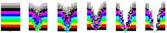 32. Castro, R.; Gómez, R.; Arancibia, L. Fine material migration modelled by cellular automata. Granul. Matter 2021, 24, 14. [Google Scholar] [CrossRef]