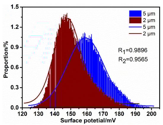 Figure 10. Proportion distribution of surface potential and fitting curve in 2 μm × 2 μm and 5 μm × 5 μm.