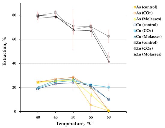 - Elkina, Y.A.; Melamud, V.S.; Bulaev, A.G. Effect of organic nutrients on bioleaching of low-grade copper concentrate at different temperatures. IOP Conf. Ser. Earth Environ. Sci. 2021, 677, 042076. [Google Scholar] [CrossRef]