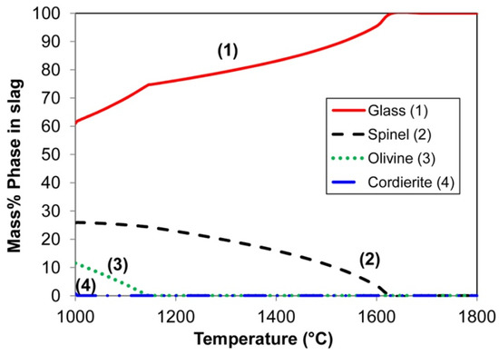 Therefore, the flux should be formulated to manage the slag phase proportions of matrix oxy-fluoride glass phase to spinel crystals. Increasing the proportion of matrix oxy-fluoride glass phase in the slag will ensure a fluid slag at lower temperatures to improve slag detachability. As highlighted in previous studies, the flux CaF2 content should be increased to increase the proportion glass matrix phase in the slag, but also to reduce the size and increase the dispersion of spinel crystals formed upon solidification of the slag [8,43].