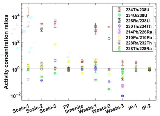 - Kobashi, A.; Sato, J.; Saito, N. Radioactive Disequilibrium with Uranium, Thorium and Radium Isotopes Leached from Euxenite. Radiochim. Acta 1979, 26, 107–111. [Google Scholar] [CrossRef]