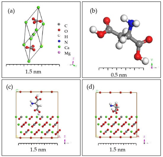 The adsorption energy Eadsorption of Asp on the surface of calcite can be represented as Equation (1):