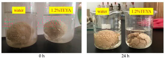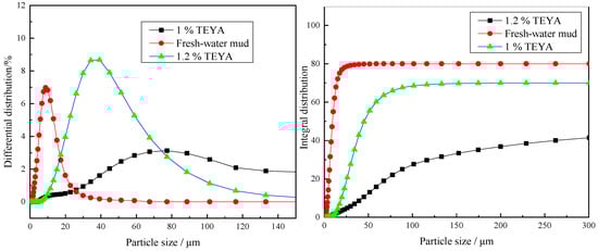 The median diameter and average diameter of the water group were compared with those with added TEYA to study the adsorption of TEYA on clay. The results are shown in Figure 4.