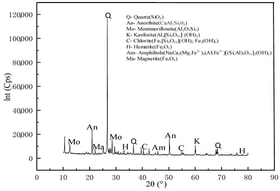 The mineral composition of the tailings was analyzed by D/MAX2500PC X-ray diffractometer, and the X-ray diffraction (XRD) analysis results are shown in Figure 2.
