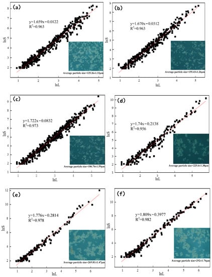 According to the flocculated particle size and area of the settled particle flocs obtained in the above steps, the fractal dimension [32] is calculated according to Formula (2).