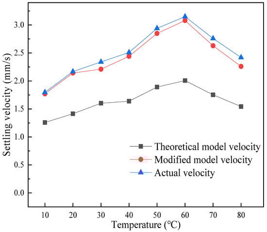 In addition, in the actual settling process, liquid viscosity is greatly affected by temperature, and, with the change in liquid temperature t, changes significantly [45]. The relationship between and t is shown in Formula (14):